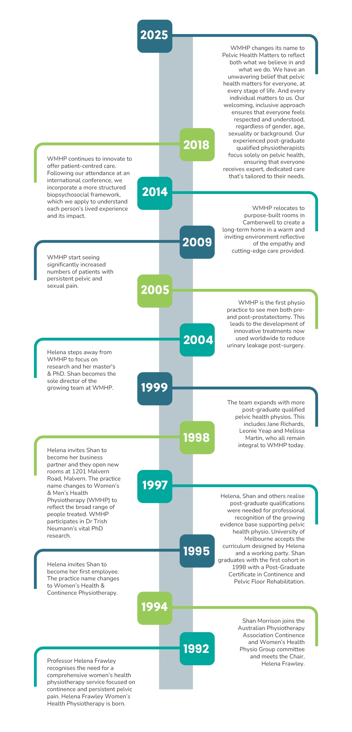 2022 marked our 30th anniversary — a fantastic opportunity to reflect on the evolution of Melbourne's first private practice solely dedicated to pelvic health physiotherapy.