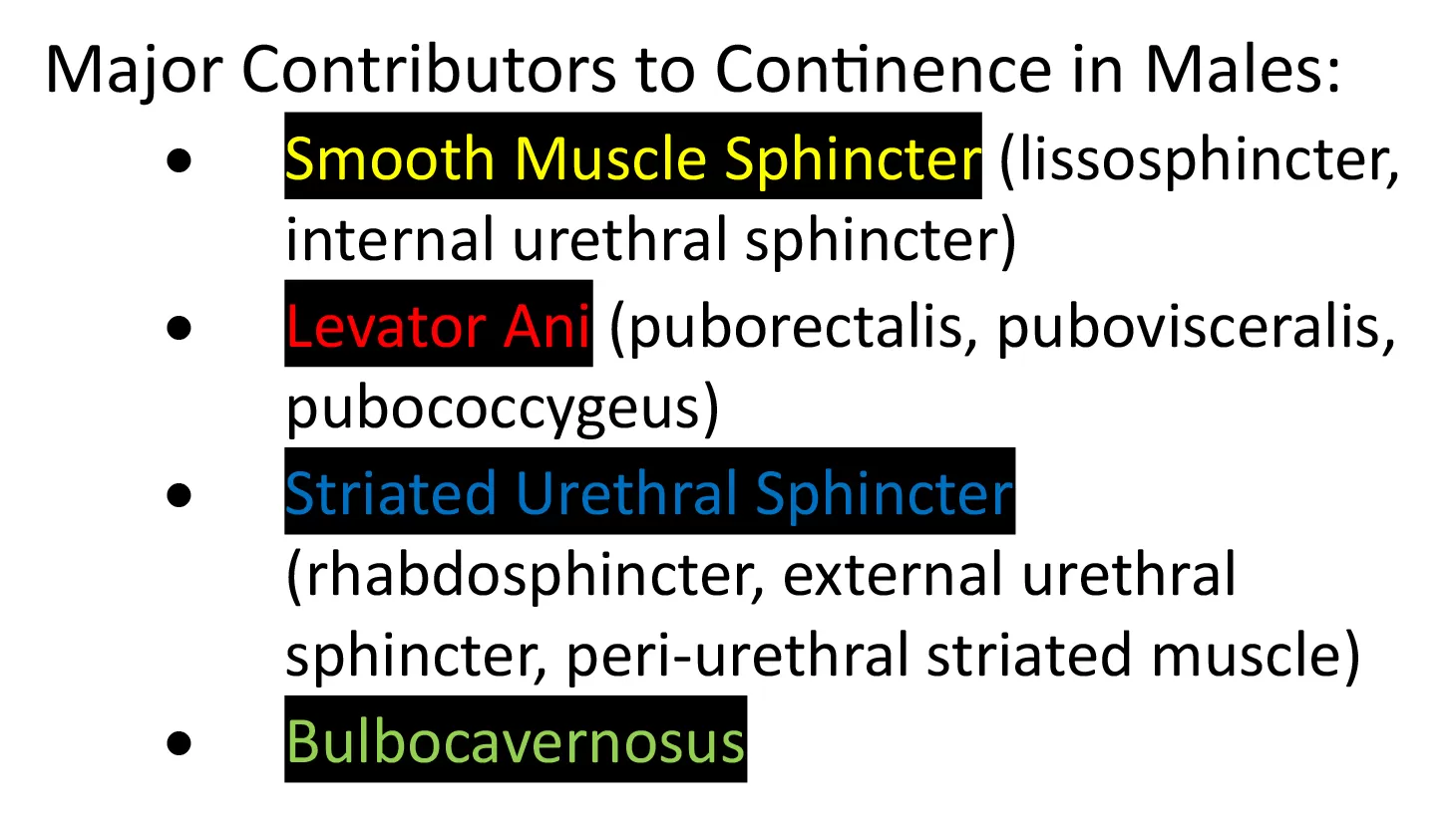 - Involving high intensity strength and endurance training as the straited muscles need to be strong enough to compensate for the loss of smooth muscle following prostatectomy